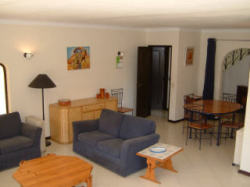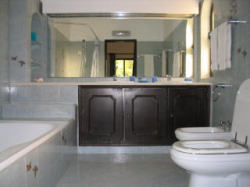 La característica es a localizado en Algarve Villa Alegria in the Golden Triangle, Almancil el dormir hasta 6 personas adentro 3 dormitorios. Hay 4 solas camas y 1 camas matrimoniales junto con 3 cuartos de baño y 3 tocadores.