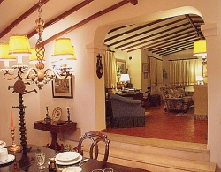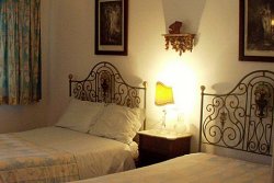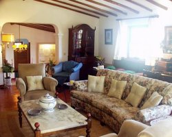 Sunny and south facing the villa is beautifully appointed with a mix of antique and modern pieces. Original features, like exposed beams, terracotta floor tiles and antique marble fireplace, have been retained while all the modern amenities have been added for your comfort. The large sitting room opens directly on to the pool as do 2 of the bedrooms; one is completely self-contained with its en-suite bathroom giving a bit of privacy to teenage or older members of your family. The master bedroom looks out on to the rose garden. This private walled property with absolutely no neighbours on either side, is surrounded by 2.5 acres of its own orchards and mature gardens and has access through double iron gates A double-ended Roman 5 by 9 metre pool has plenty of pool recliners, chairs and parasols on the large terrace which runs the whole length of the front of the villa and may be viewed via a security camera and seen from the TV in the lounge - great for keeping an eye on the children. In front of the pool there is a wide expanse of lawn surrounded by palm trees and shrubs. The purpose built barbecue and pizza/bread oven are by the private off-road parking area to avoid cooking smells. The secluded rose garden to the side of the house has typical stone seating and the roof terrace has an amazing panoramic view to Lagos bay and the mountains to the north, wonderful for watching the sunset or the stars at night!