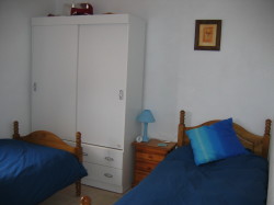 La característica es a localizado en Mil Palmeras, Costa Blanca, Spain el dormir hasta 4 personas adentro 2 dormitorios. Hay 2 solas camas y 1 camas matrimoniales junto con 1 cuartos de baño y 1 tocadores.