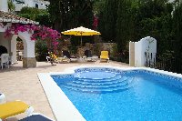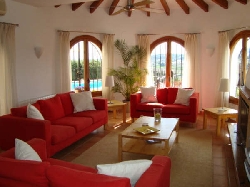 La característica es a localizado en Moraira, Costa Blanca, Alicante el dormir hasta 6 personas adentro 3 dormitorios. Hay 4 solas camas y 1 camas matrimoniales junto con 2 cuartos de baño y 2 tocadores.